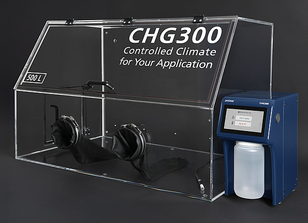 The CHG300 is a humidity generator perfectly suited for midsize volumes like gloveboxes or enclosures. The CHG300 offers dynamic humidity control for chamber volumes up to 500 l and static control for chamber volumes up to 1000 l.