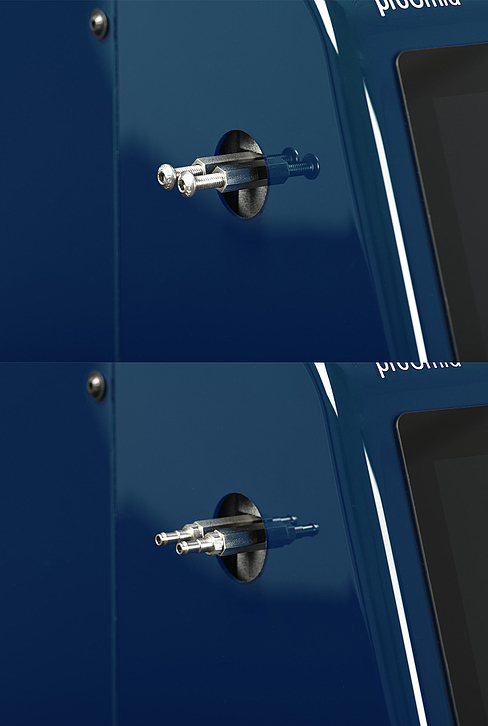 This modern patent pending design is capable of powerful humidification and uses efficient constant circulation for fast humidity regulation. The 10” touchscreen display allows easy, intuitive operation. The CHG300 is equipped with customizable attachment options for the target system. The air outlets can be positioned on either side of the instrument, and the versatile outputs offer multiple options to attach to the target system.